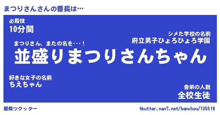 | 伝説のあだ名 | 『不死鳥のスナイパーまつりさん』 |