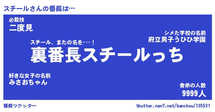 | ファンタジー風あだ名 | 『スチフェル』『エターナルスチールー』 |
