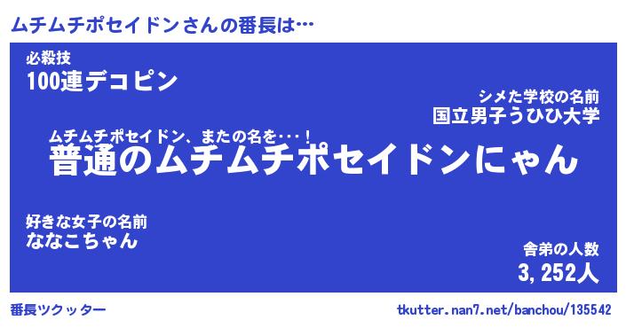 | 2回繰り返すあだ名 | 『ムチムチ』『ムムチチ』『いじいじ』 |