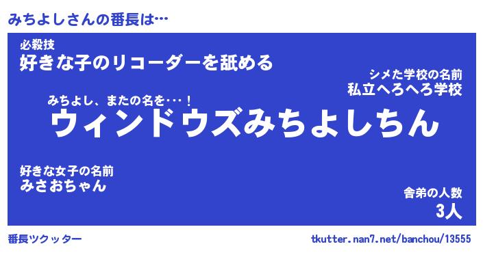 | 意味不明あだ名 | 『ペロリンみちよし』『永久保存みちよし』 |