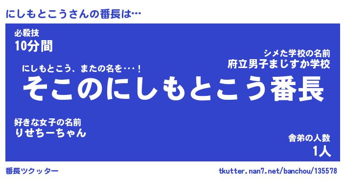 | ヒーロー風カッコイイあだ名 | 『スーパーニシモトコウ』『暗黒騎士ニシ』 |
