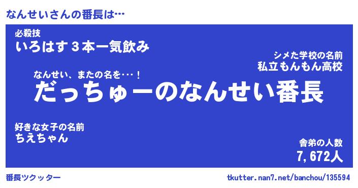 | ヘコむあだ名 | 『なんにー』『豆乳』『なんっぺ』 |