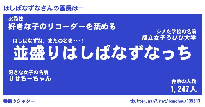 | 肩書あだ名 | 『はしばなずな社長』『はしばなずな班長』 |