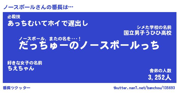 | ヒーロー風カッコイイあだ名 | 『スーパーノースポール』『天弓騎士ノー』 |