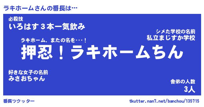 | ヒーロー風カッコイイあだ名 | 『スーパーラキホーム』『魔戒騎士ラキ』 |