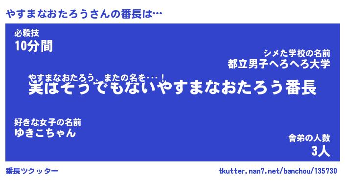 | 意味不明あだ名 | 『ペロリンやすまなおたろう』 |