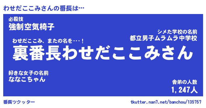 | ヘコむあだ名 | 『わせにゅー』『牛乳』『わせを』 |