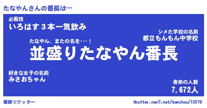 | ポケモン風あだ名 | 『タナチュウ』『タナヤダネ』 |