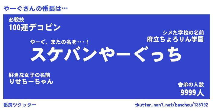 | ヒーロー風カッコイイあだ名 | 『スーパーヤーグ』『ウルトラやーぐマン』 |