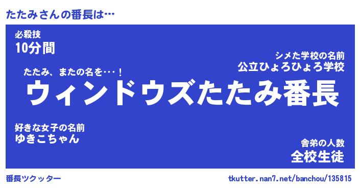 | 意味不明あだ名 | 『ペロリンたたみ』『たたみフォーエバー』 |
