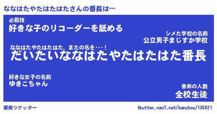 | 男性向けラノベタイトル風あだ名 | 『ななはたやたはたはたの憂鬱』 |