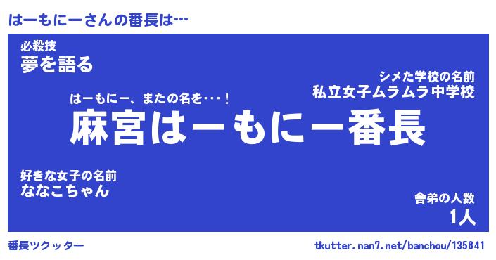 | 2回繰り返すあだ名 | 『はーはー』『ははーー』『あんあん』 |