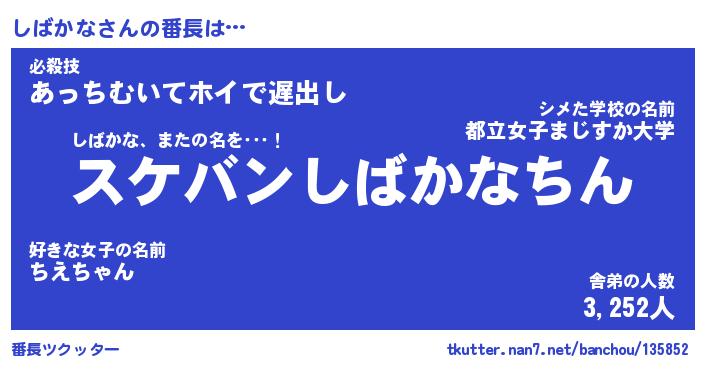 | 意味不明あだ名 | 『ペロリンしばかな』『永久保存しばかな』 |
