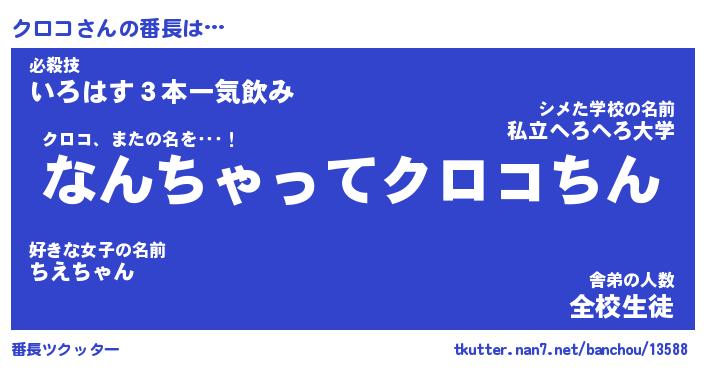 | ヒーロー風カッコイイあだ名 | 『スーパークロコ』『ウルトラクロコマン』 |