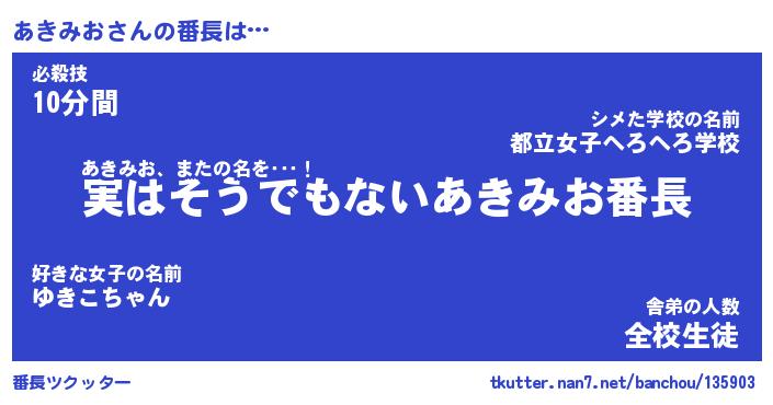 | ファンタジー風あだ名 | 『アキフェル』『エターナルアキミオー』 |