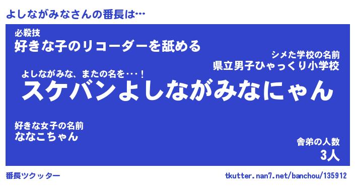 | 意味不明あだ名 | 『ペロリンよしながみな』 |