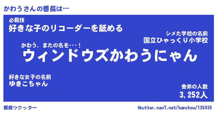 | ヒーロー風カッコイイあだ名 | 『スーパーカワウ』『ウルトラかわうマン』 |