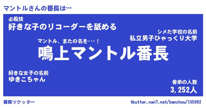 | 肩書あだ名 | 『マントル御曹司』『マントル国家主席』 |