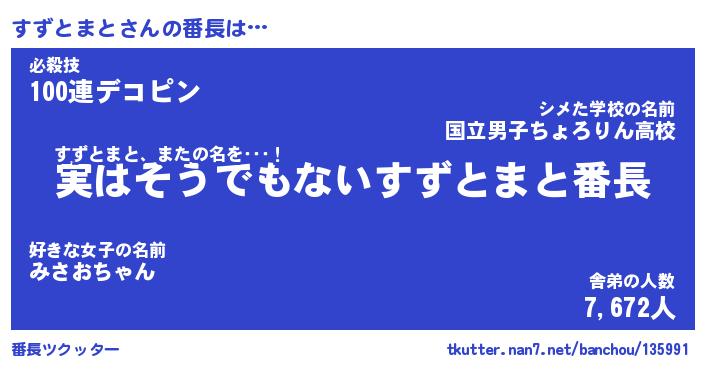 | ピコ太郎風あだ名 | 『スコ四郎』『ピス次郎』『スズ三郎』 |