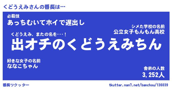 | 肩書あだ名 | 『くどうえみ御曹司』『くどうえみ団長』 |
