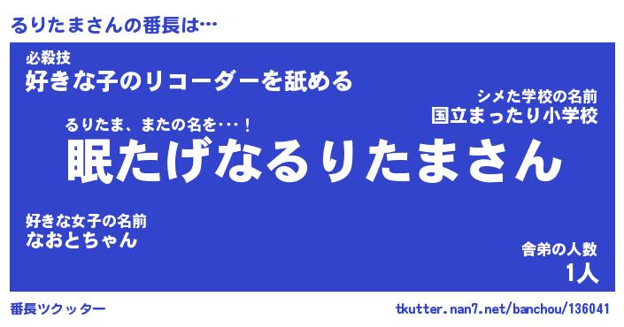 | 2回繰り返すあだ名 | 『るりるり』『るるりり』『いらいら』 |