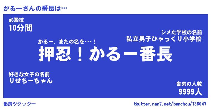 | ヒーロー風カッコイイあだ名 | 『スーパーカルー』『ウルトラかるーマン』 |