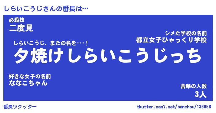 | 意味不明あだ名 | 『ペロリンしらいこうじ』 |