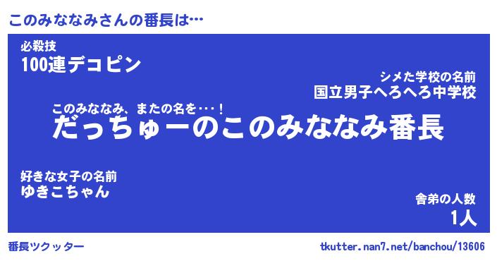 | ポケモン風あだ名 | 『コノチュウ』『コノミダネ』 |