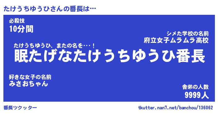 | 肩書あだ名 | 『たけうちゆうひ御曹司』 |