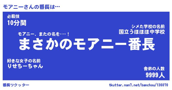 | 意味不明あだ名 | 『ペロリンモアニー』『永久保存モアニー』 |