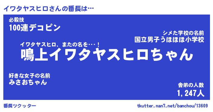 | ピコ太郎風あだ名 | 『イコ太郎』『ピイ次郎』『イワ八郎』 |