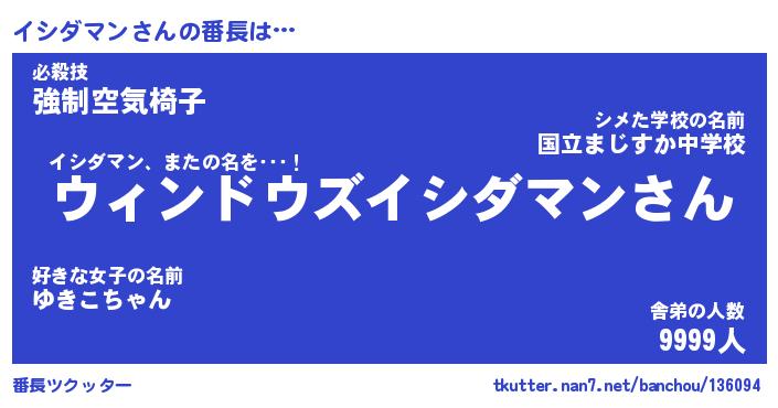 | ファンタジー風あだ名 | 『イシフェル』『エターナルイシダマンー』 |