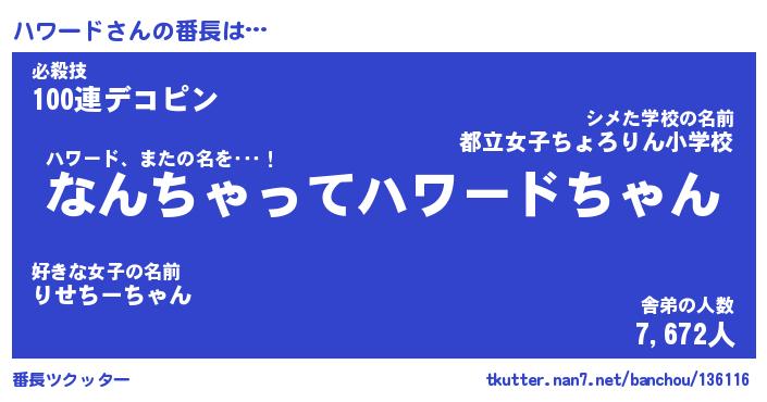 | 意味不明あだ名 | 『ペロリンハワード』『永久保存ハワード』 |