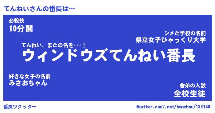 | ポケモン風あだ名 | 『テンチュウ』『テンネダネ』 |