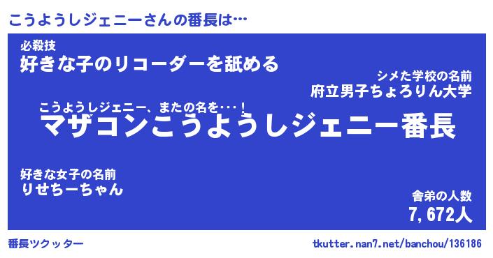 | 欧米人風あだ名 | 『マイケルこうようしジェニー』 |