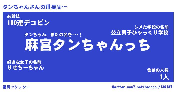 | ファンタジー風あだ名 | 『タンフェル』『エターナルタンチャンー』 |