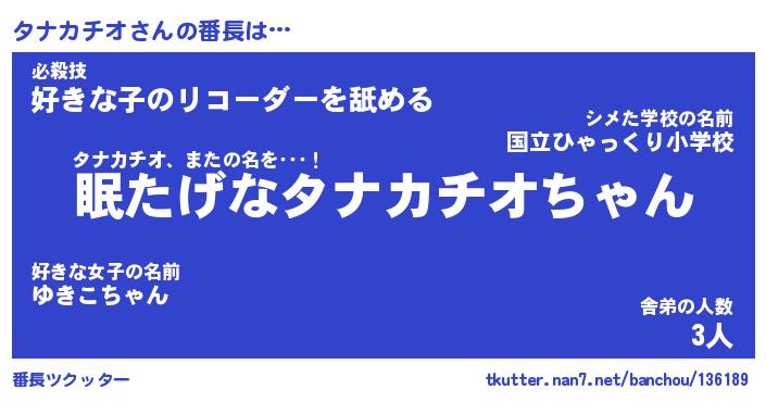| ファンタジー風あだ名 | 『タナフェル』『エターナルタナカチオー』 |