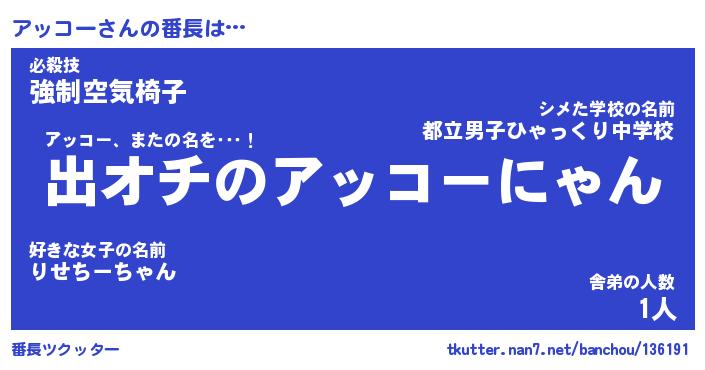 | ヒーロー風カッコイイあだ名 | 『スーパーアッコー』『銀牙騎士アッ』 |