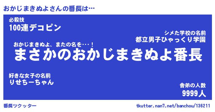 | 胡散臭い通販商品みたいなあだ名 | 『必ず成功する霊験あらたかなお札…その名も「おかじまきぬよ」』 |