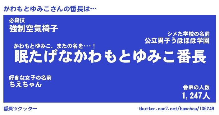 | ヘコむあだ名 | 『かわもー』『牛乳』『かわっぺ』 |