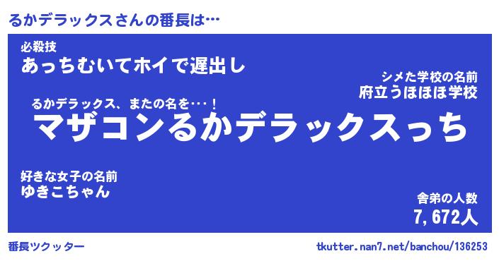 | 伝説のあだ名 | 『封印されしスナイパーるかデラックス』 |