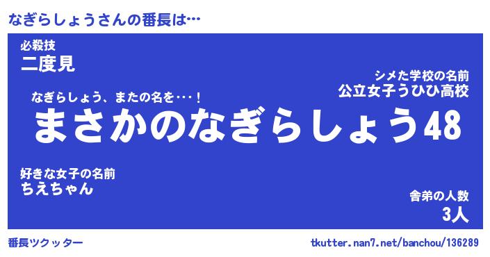 | 肩書あだ名 | 『なぎらしょう社長』『なぎらしょう団長』 |
