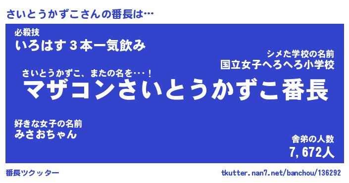 | 恥ずかしいあだ名 | 『プリティーさいとうかずこ』『さいちん』 |