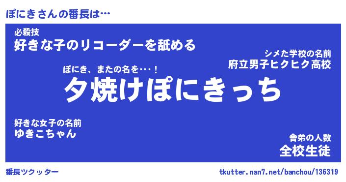 | 意味不明あだ名 | 『ペロリンぽにき』『ぽにきフォーエバー』 |