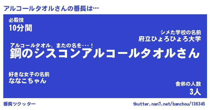 | 伝説のあだ名 | 『封印されしスナイパーアルコールタオル』 |