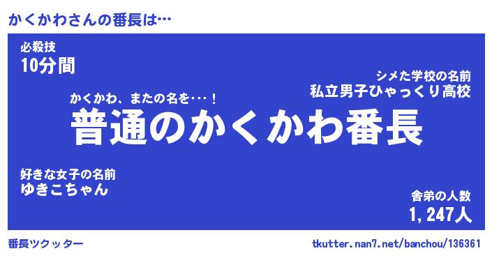 | ヒーロー風カッコイイあだ名 | 『スーパーカクカワ』『銀牙騎士カク』 |