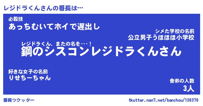 | ヒーロー風カッコイイあだ名 | 『スーパーレジドラクン』『魔戒騎士レジ』 |