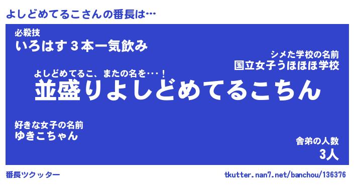 | 意味不明あだ名 | 『ペロリンよしどめてるこ』 |