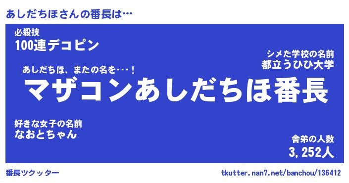 | 肩書あだ名 | 『あしだちほ店長』『あしだちほ総理大臣』 |