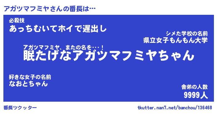 | 肩書あだ名 | 『アガツマフミヤ社長』 |